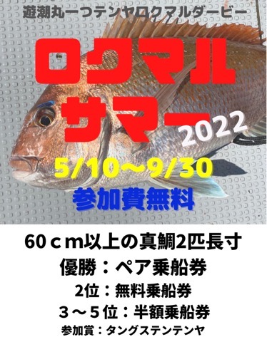 対象:一つテンヤで釣り上げた60cm以上の真鯛で期間中に釣り上げた大きい方から2匹長寸。