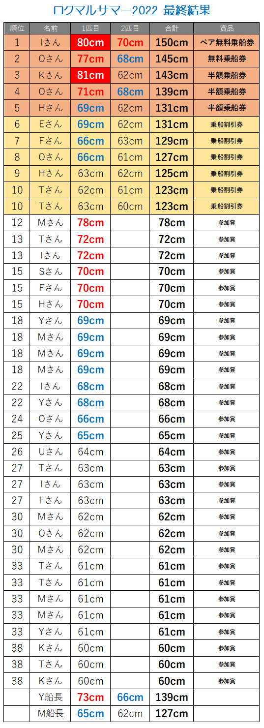 参加費:無料(対象魚を釣り上げ、検寸の結果60cmを超えていた時点で自動的にエントリーになります)