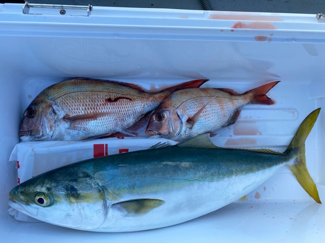 2023年1月4日 / 最終更新日時 : 2023年1月4日 uchomaru 釣行結果 初釣りは鯛でしょ 今日もヒトツテンヤ 正月はやっぱ鯛でしょ と言いながら年中タイ釣りです 今日も満ち潮 アタリ活発 赤に青に 忙しい 満ち潮終わって アタリ散発になりましたが 下げ潮効いてきて いくらか追加 今日もラストは ハマチでした みなさん5〜8匹 小型はリリースでした 正月からタイ釣り好調 1/7(土)空きあり 1/9(祝)空きあり